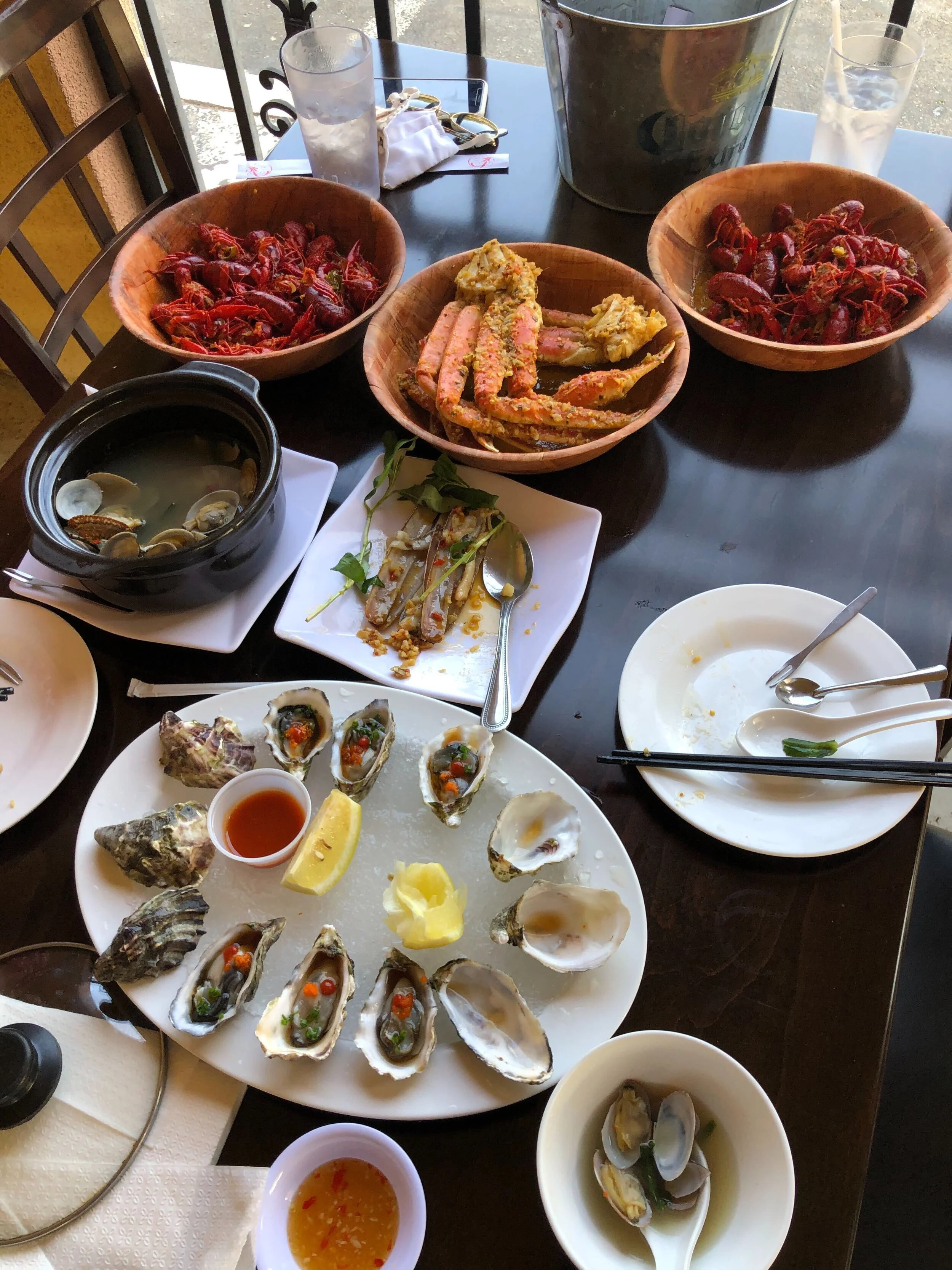 I was sitting in a restaurant in nearly 100 degree heat admiring the array of oysters, clams, and crab on our dinner table. It was blistering hot and I was sweating as I was cracking open another crab leg. The smell of lemongrass and Vietnamese spices were strong. I was in heaven.